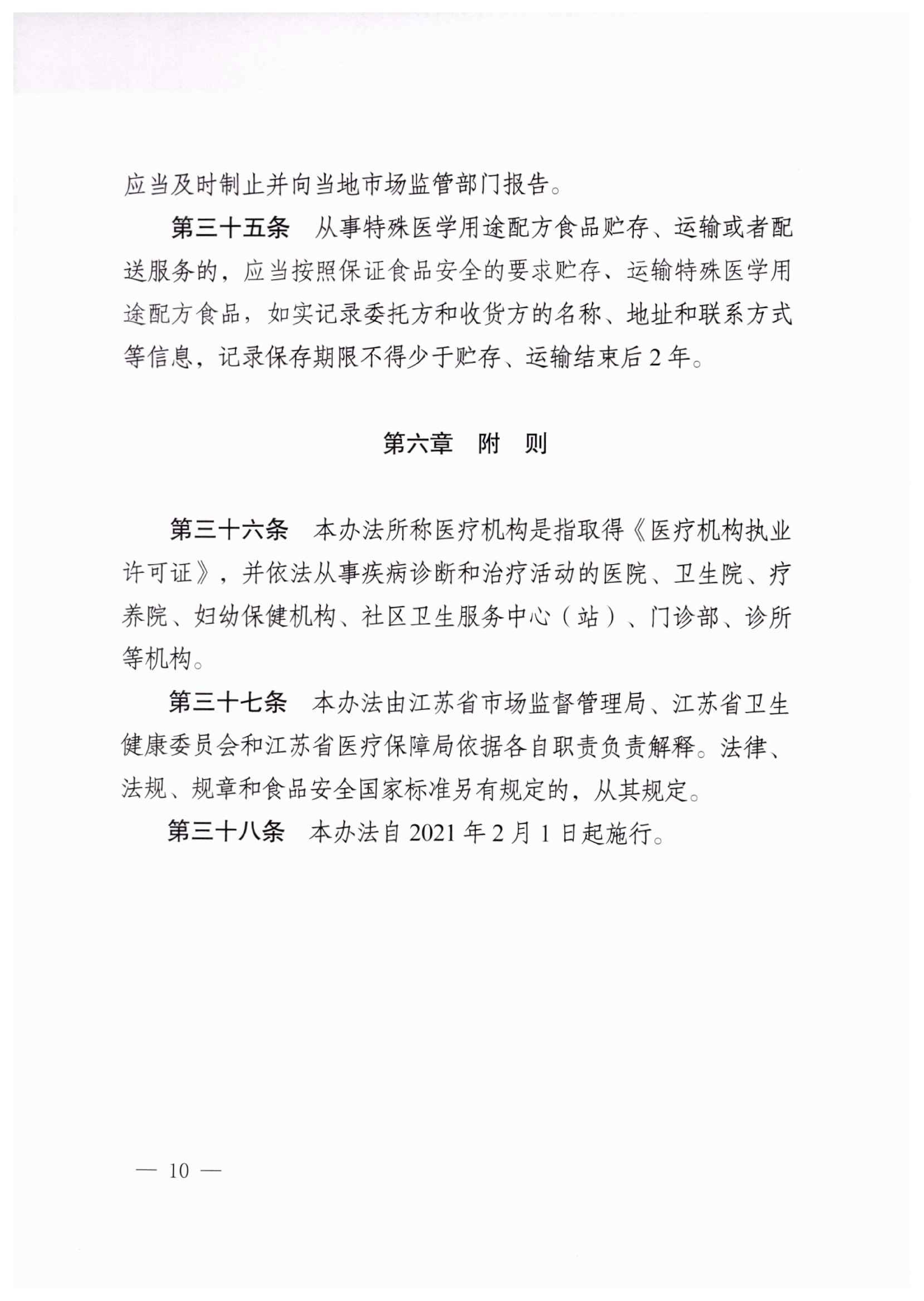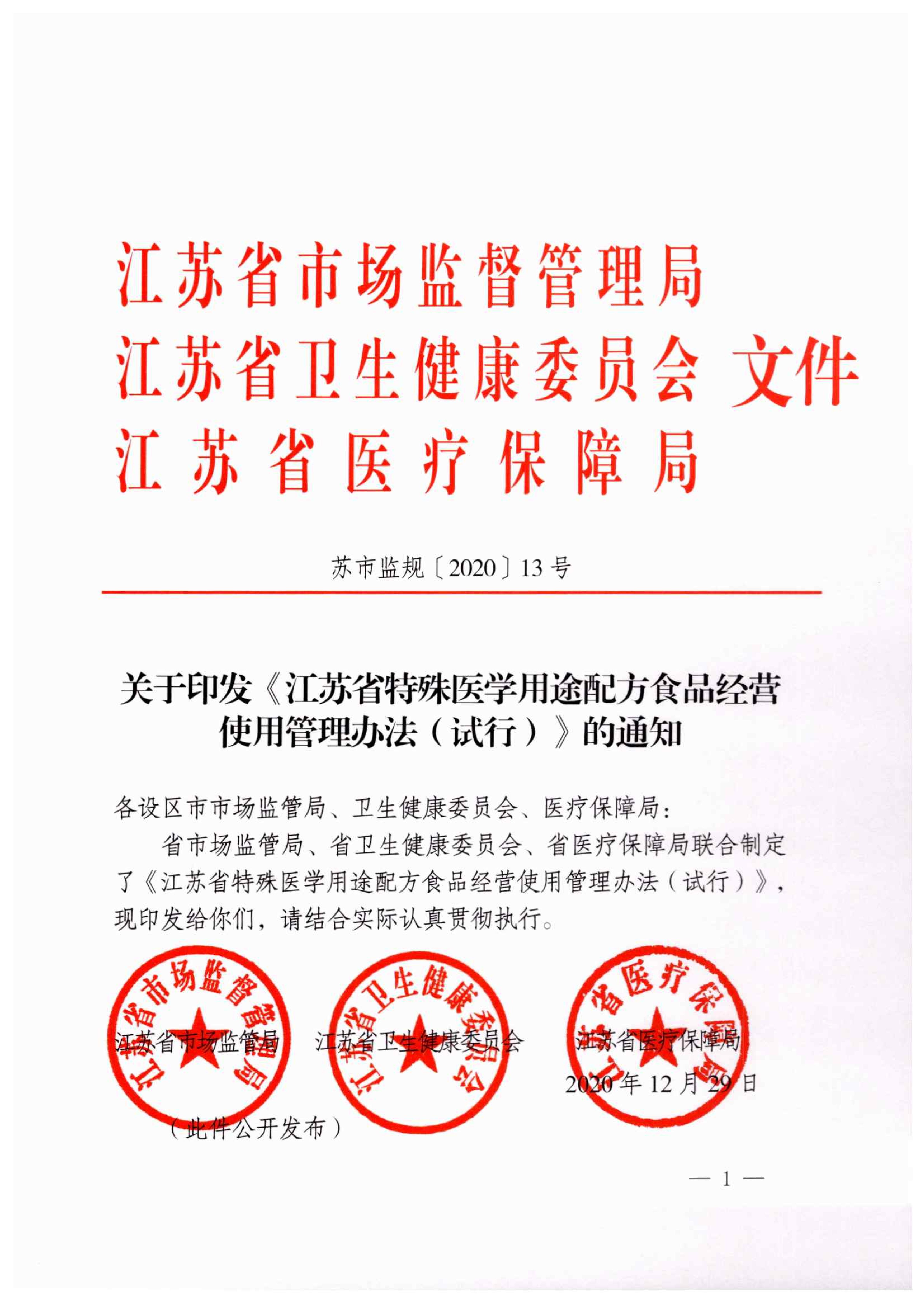 關(guān)于印發(fā)《江蘇省特殊醫(yī)學(xué)用途配方食品經(jīng)營使用管理辦法(試行)》的通知(附全文)