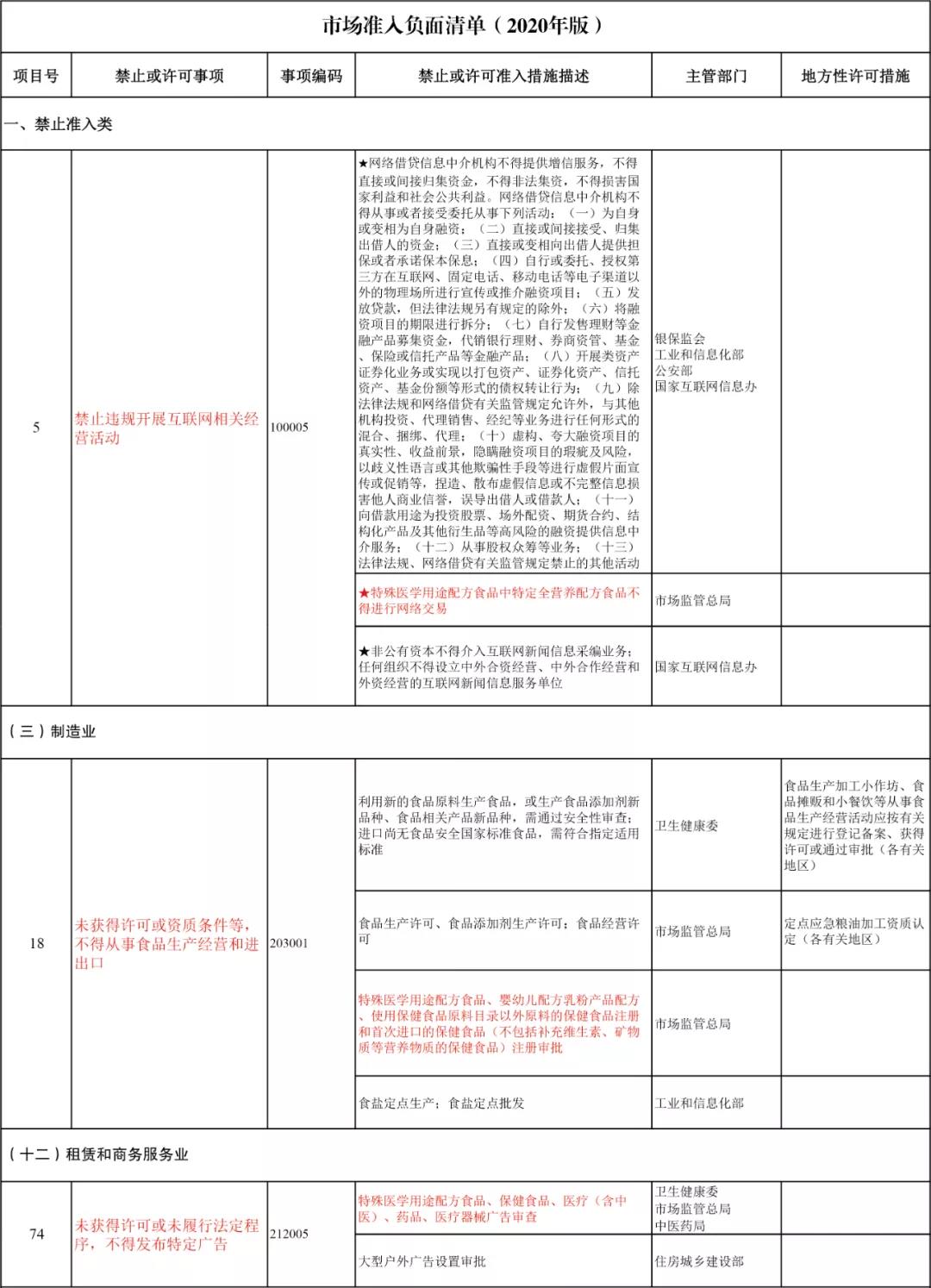 為貫徹落實(shí)黨的十九大和十九屆二中、三中、四中、五中全會(huì)精神,國家發(fā)展改革委、商務(wù)部會(huì)同各地區(qū)各有關(guān)部門對(duì)《市場準(zhǔn)入負(fù)面清單(2019年版)》開展全面修訂,形成《市場準(zhǔn)入負(fù)面清單(2020年版)》,經(jīng)黨中央、國務(wù)院批準(zhǔn),自即日起印發(fā)實(shí)施。各地區(qū)各部門要認(rèn)真抓好清單落地實(shí)施工作,密切關(guān)注市場反映,及時(shí)提出完善市場準(zhǔn)入負(fù)面清單制度的意見建議。國家發(fā)展改革委、商務(wù)部將扎實(shí)做好市場準(zhǔn)入負(fù)面清單制度組織實(shí)施工作,清單實(shí)施中的重大情況,及時(shí)向黨中央、國務(wù)院報(bào)告。