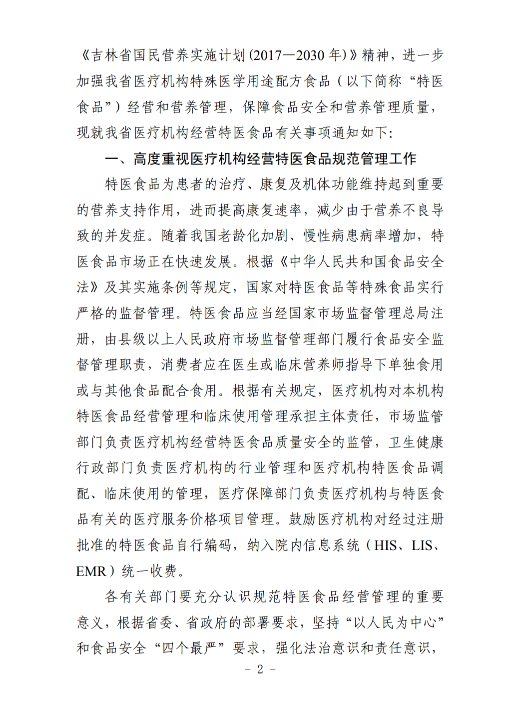 為貫徹落實(shí)《“健康中國(guó)2030”規(guī)劃綱要》《吉林省委辦公廳省政府辦公廳關(guān)于全面加強(qiáng)食品安全監(jiān)管工作的意見(jiàn)》《吉林省國(guó)民營(yíng)養(yǎng)實(shí)施計(jì)劃(2017-2030年)》精神,進(jìn)一步加強(qiáng)我省醫(yī)療機(jī)構(gòu)特殊醫(yī)學(xué)用途配方食品經(jīng)營(yíng)和營(yíng)養(yǎng)管理,保障食品安全和營(yíng)養(yǎng)管理質(zhì)量,現(xiàn)就我省醫(yī)療機(jī)構(gòu)經(jīng)營(yíng)特醫(yī)食品有關(guān)事項(xiàng)通知如下: