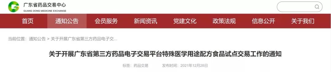 廣東省發(fā)布關(guān)于開(kāi)展第三方藥品電子交易平臺(tái)特殊醫(yī)學(xué)用途配方食品試點(diǎn)交易工作的通知