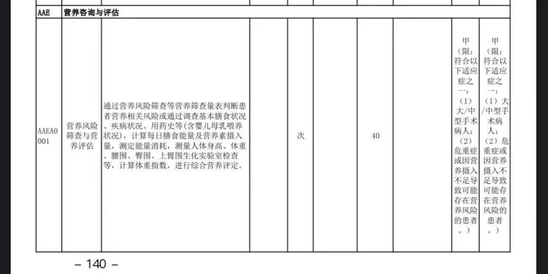 此次目錄調(diào)整加入了“營養(yǎng)風(fēng)險(xiǎn)篩查與營養(yǎng)評估”40元/次,且屬于甲類醫(yī)保,這將大幅提高入院患者的營養(yǎng)篩查率,促進(jìn)患者在住院期間得到有效的營養(yǎng)治療。