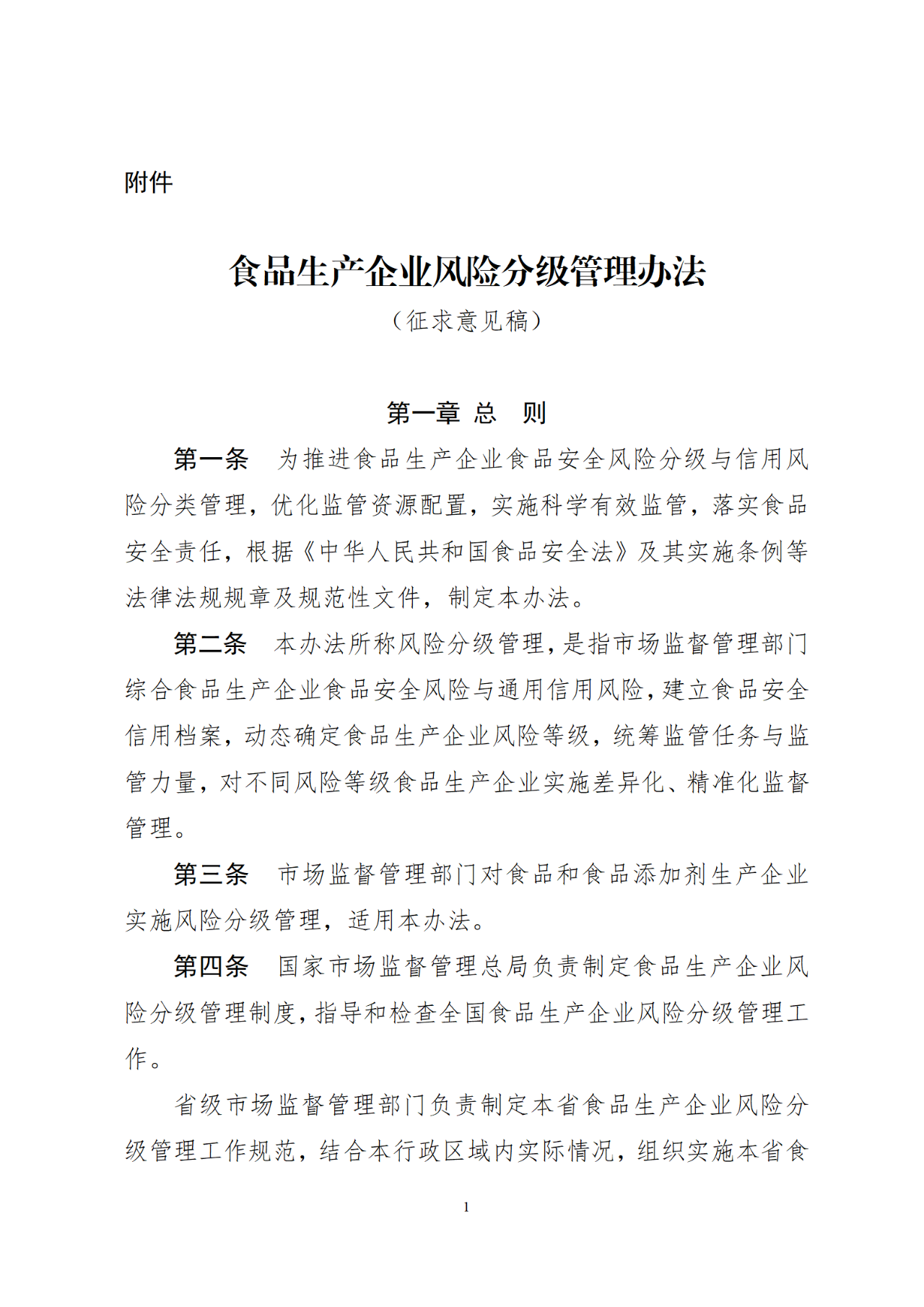 為推進食品生產企業(yè)食品安全風險分級與信用風險分類管理,優(yōu)化監(jiān)管資源配置,2022年2月17日,國家市場監(jiān)督管理總局發(fā)布了關于公開征求《食品生產企業(yè)風險分級管理辦法(征求意見稿)》意見的通知。