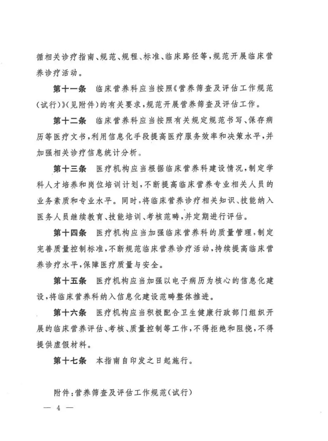 4 ?醫(yī)療機(jī)構(gòu)應(yīng)當(dāng)認(rèn)真遵守有關(guān)法律法規(guī)、規(guī)章制度,遵循相關(guān)診療指南、規(guī)范、規(guī)程、標(biāo)準(zhǔn)、臨床路徑等,規(guī)范開展臨床營(yíng)養(yǎng)診療活動(dòng)。