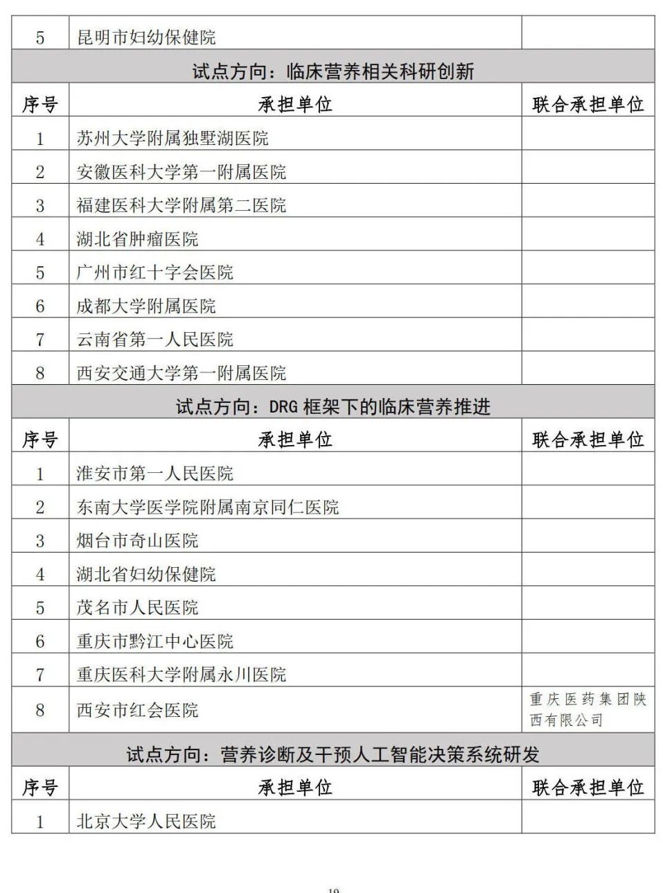 國(guó)衛(wèi)醫(yī)研所 | 臨床營(yíng)養(yǎng)科建設(shè)試點(diǎn)單位名單更新