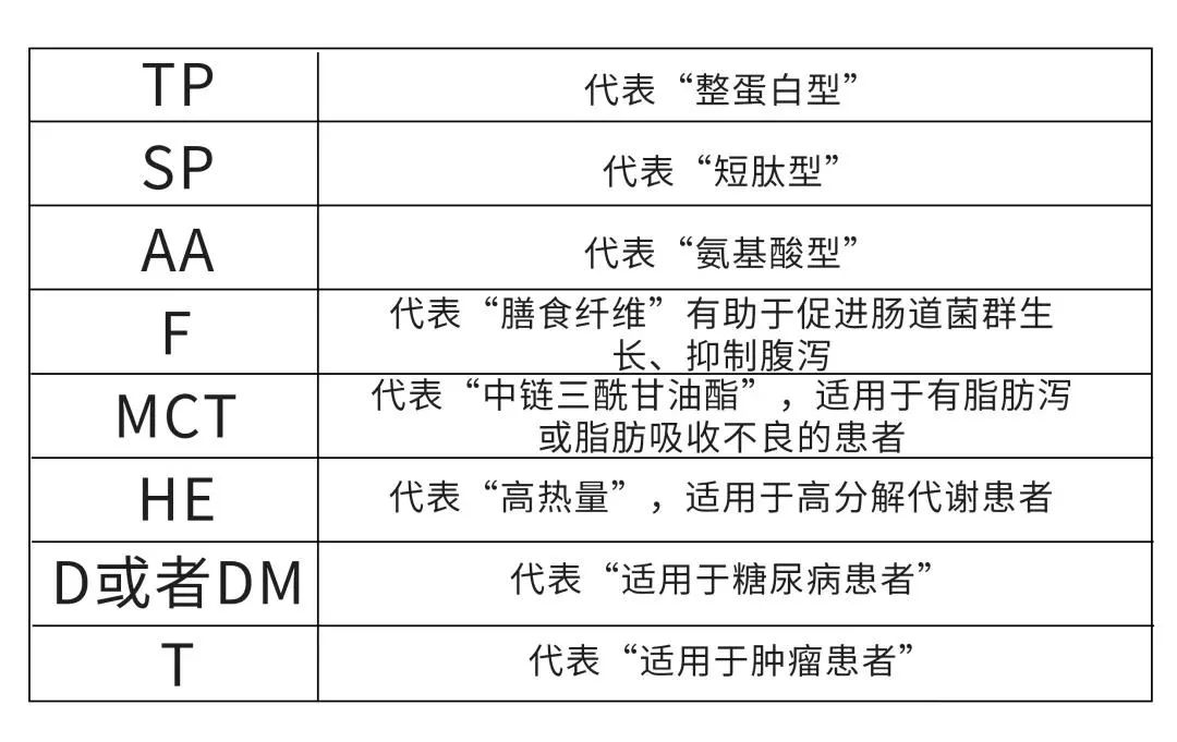 腸內(nèi)營(yíng)養(yǎng)(EN)是指經(jīng)口服或管飼途徑,通過(guò)胃腸道提供營(yíng)養(yǎng)物質(zhì)的一種營(yíng)養(yǎng)支持療法方式。腸內(nèi)營(yíng)養(yǎng)制劑的分類(lèi),從腸內(nèi)營(yíng)養(yǎng)制劑瓶/袋身上大寫(xiě)字母的含義來(lái)看。