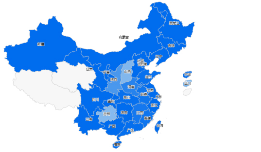 上述特殊食品中,產(chǎn)地為貴州的特殊食品抽檢合格率偏低,為87.50%。(各省份抽檢合格率見圖2.1,顏色越深代表合格率越高)。