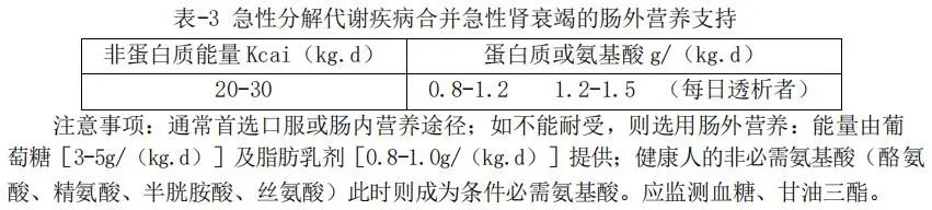 2、腎功能不全:急性分解代謝性疾病(感染、創(chuàng)傷或多器官功能衰竭(表2)、慢性腎衰透析病人合并營養(yǎng)不良,因不能進(jìn)食或接受腸內(nèi)營養(yǎng)而需腸外營養(yǎng)支持(表3)。慢性腎衰透析期間可由靜脈回輸血時(shí)輸注腸外營養(yǎng)混合液。