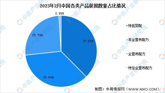 特醫(yī)食品可以分為四類,包括適用于0-12月齡嬰兒的特殊醫(yī)學(xué)用途嬰兒配方食品;適用于1歲以上人群的特醫(yī)食品,包括全營(yíng)養(yǎng)配方食品、特定全營(yíng)養(yǎng)配方食品以及非全營(yíng)養(yǎng)配方食品。從產(chǎn)品類型來看,已獲批的101款特醫(yī)食品中,特醫(yī)嬰配產(chǎn)品38款,非全營(yíng)養(yǎng)類產(chǎn)品36款,全營(yíng)養(yǎng)類產(chǎn)品26款,特定全營(yíng)養(yǎng)類產(chǎn)品1款,分別占比37.62%、35.64%、25.74%和0.99%。