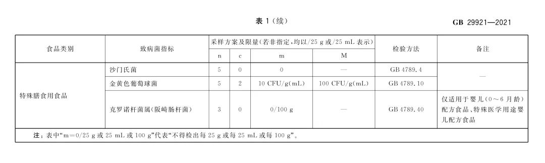固態(tài)特殊醫(yī)學(xué)用途配方食品致病菌限量要求應(yīng)符合GB 29921的規(guī)定