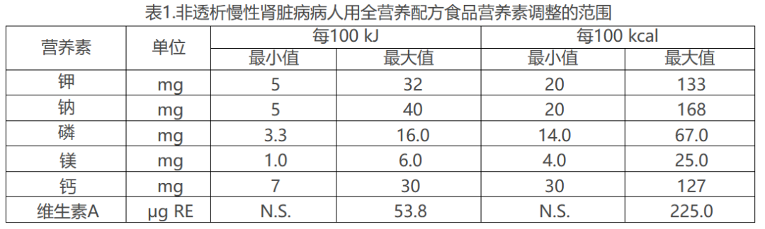 1)對于非透析慢性腎臟病患者,產(chǎn)品配方具體技術(shù)要求如下: