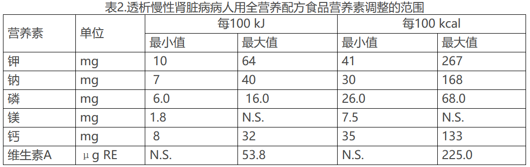 2)對于透析治療的患者,產(chǎn)品配方具體技術(shù)要求如下: